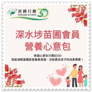 持續的疫情令經濟受創,對基層家庭的生活影響尤甚。有些基層家庭因經濟能力有限,未能全面照顧孩子「黃金發育期」的營養需要,對兒童成長造成長遠影響。「深水埗苗圃」致力為街坊提供適時到位的服務,將於7月至12月期間送出「一月一心意」,每月為1,000個基層家庭會員送上一份營養心意包,提供富蛋白質及DHA等食物,7月份心意有雞蛋、芝士、三文魚、乳酸菌飲品及湯包等,讓孩子能吸收到足夠營養。